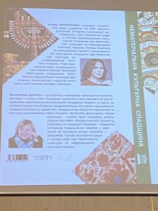 Старший науковий співробітник Всеукраїнського центру вишивки та килимарства Олена БЕЗНОСЮК взяла участь у презентації монографії «Нематеріальна культурна спадщина, як найголовніший інструмент збереження української нації». Захід відбувся на історичному факультеті Київського національного університету імені Тараса Шевченка. Авторами монографії є кандидат історичних наук, член Експертної ради з НКС Міністерства культури та стратегічних комунікацій України Влада ЛИТОВЧЕНКО та голова Експертної ради з НКС МКСК Валентина ДЕМ’ЯН.